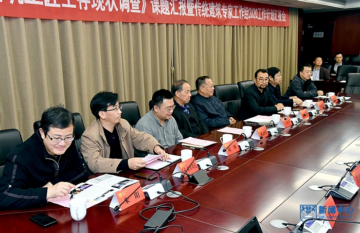 之后召開了住建部課題《全國傳統建筑工匠生存現狀調查》中期匯報暨傳統建筑專家工作組2020年工作計劃匯報會議,王新華秘書長主持,傳統建筑專家馬炳堅等15位專家與會,建筑學院黨委書記郭華瑜教授、李國華、胡占芳、劉曉光等師生參加會議。