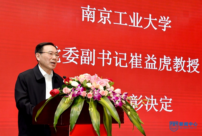校黨委副書記、校友總會副會長崔益虎宣讀《關于表彰南京工業大學校友會2019年度“特別貢獻獎”“特殊貢獻獎”“優秀地方校友會”“優秀校友工作者”和“校友貢獻獎”的決定》