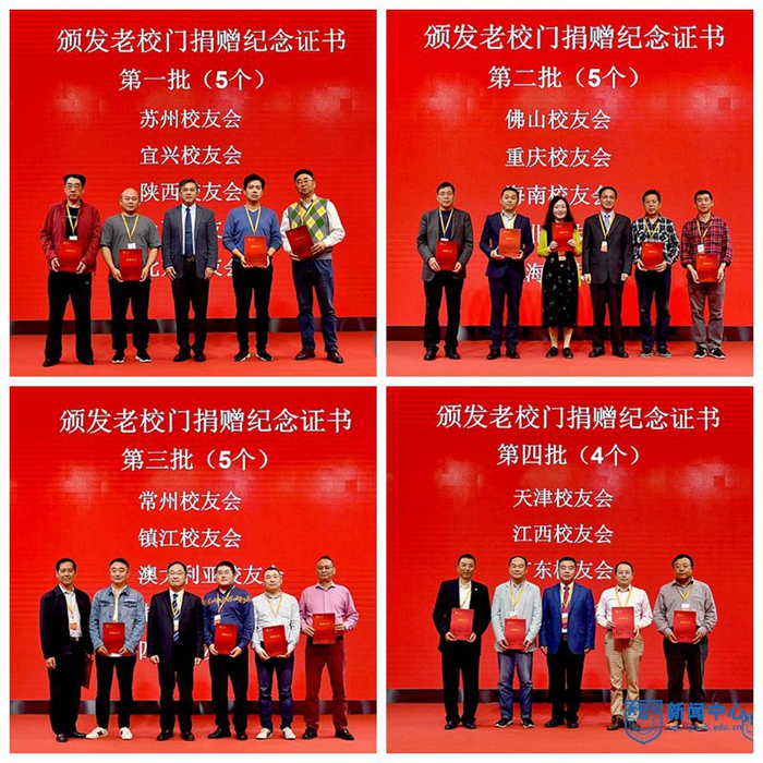 今年以來,各地校友會積極響應校友總會提出的復建模范馬路校區老校門倡議,并踴躍捐款。年會現場,校領導向各個地方校友會頒發捐贈紀念證書。