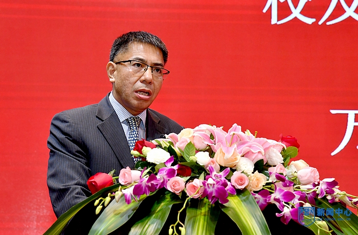 校黨委書記芮鴻巖教授發表講話,代表學校感謝校友們對母校發展的關注和奉獻。他表示,2019年是學校全面啟動創業型大學建設的開局之年,全校師生團結一致、銳意進取,在黨建工作、學科建設、人才培養、科技創新、產業轉型等方面取得了階段性成績。談及母校—校友共同體的發展路徑,他表示要以共建、共商、共享為原則,傳承文化記憶、根植創業基因、銘刻母校烙印,共享校友經濟,構建情感共同體、價值共同體、命運共同體和事業共同體。