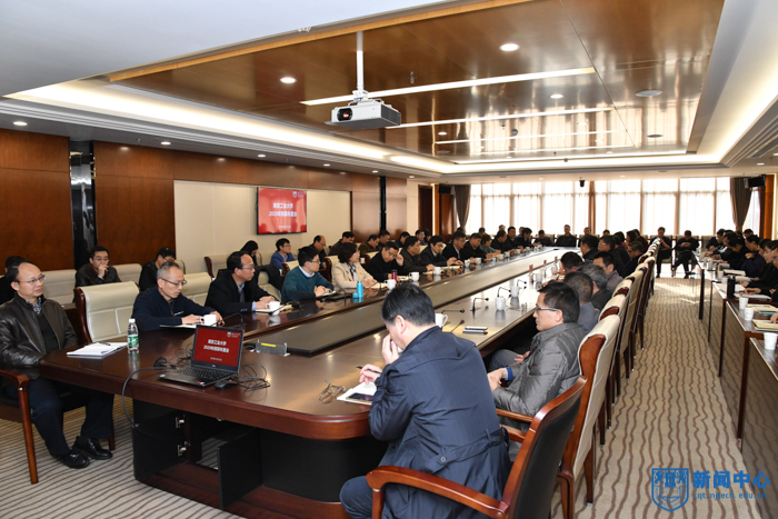 12月13日下午,學校在江浦校區材料化學工程國家重點實驗室三樓會議室召開全校2020年預算布置工作會議。校黨委書記芮鴻巖、校長喬旭、副校長鞏建鳴出席會議。各學院黨政主要負責人、各職能部門主要負責人及各財政專項負責人等參加此次會議。會議由副校長鞏建鳴主持。