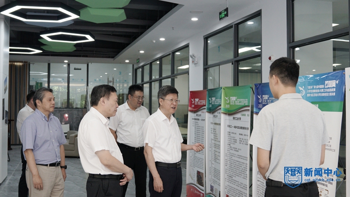 10月5日上午,校黨委書記芮鴻巖、校長喬旭、副校長鞏建鳴等慰問了正在全力備賽第七屆中國國際“互聯網+”大學生創新創業大賽總決賽現場比賽的學生和指導老師。