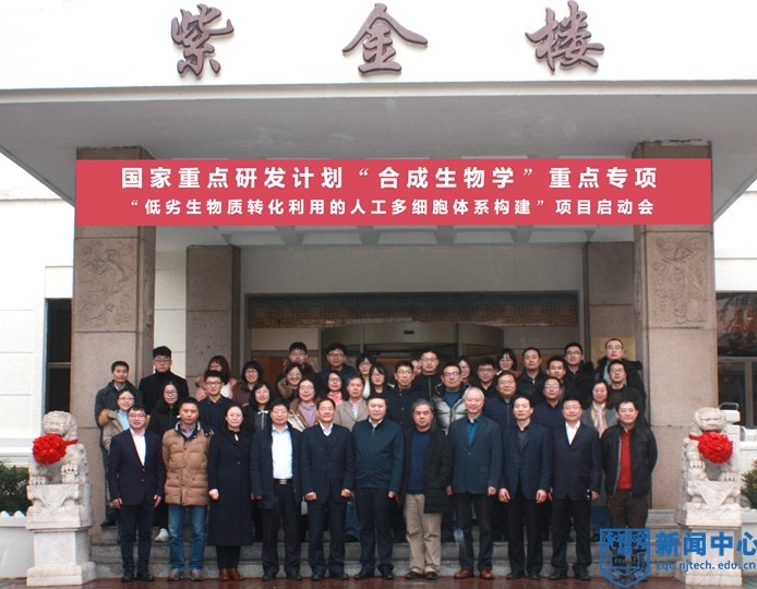 近日,我校姜岷教授主持的國家重點研發計劃“合成生物學”重點專項“低劣生物質轉化利用的人工多細胞體系構建(2018YFA0902200)”項目啟動會在南京順利召開??萍疾恐袊锛夹g發展中心生命科學與前沿技術處王德平、校長喬旭,項目咨詢專家組成員北京化工大學袁其朋教授、山東大學李越中教授、江南大學堵國成教授、上海交通大學許平教授、浙江大學楊立榮教授、華東理工大學張立新教授、中國藥科大學徐寒梅教授和中國農業科學院易可可研究員,以及該項目課題負責人、項目骨干等共計40余人出席啟動會,會議由??茖W研究部高振副處長主持。