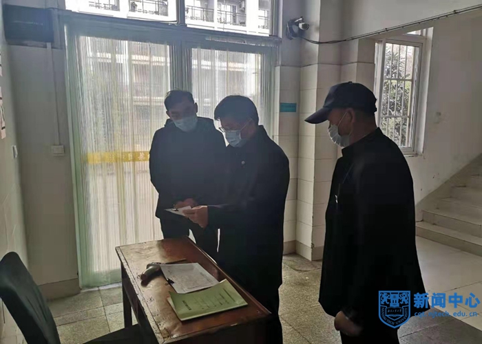 2月5日、6日,黨委書記芮鴻巖、校長喬旭先后來到江浦校區(qū)南門崗?fù)ぁ⒛显肥程谩⑿@安全部、后勤保障處、留學(xué)生公寓等疫情防控一線,詳細(xì)查看進出校園登記測溫情況、食堂供應(yīng)及消殺情況,詢問相關(guān)部門在加強校園管理、采購防護物資、做好生活保障和衛(wèi)生消殺等方面采取的措施,感謝大家為防控疫情所做的努力。紀(jì)委書記郝建祥和督察組相關(guān)人員也對相關(guān)部門疫情防控工作落實情況進行了督查。