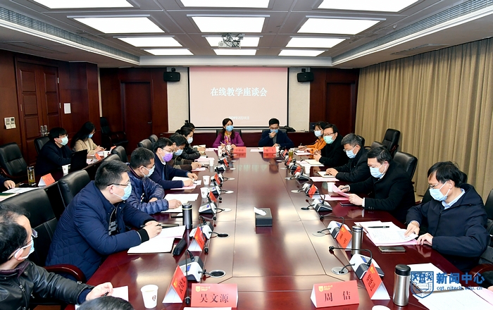 3月11日下午,學校在行政樓104會議室召開疫情防控期間在線教學專題座談會。校黨委書記芮鴻巖、校長喬旭、副校長趙志宏,任課教師代表、教學督導代表、教學學院代表,校紀委、教學事務部、學生事務部等部門負責人參加了會議。座談會由趙志宏副校長主持。