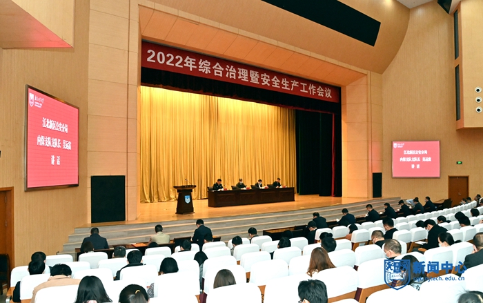3月17日下午,學校在江浦校區博雅堂召開2022年綜合治理暨安全生產工作會議。江北新區公安分局內保支隊支隊長吳遠富,校黨委書記芮鴻巖,校長喬旭出席會議。會議由校黨委副書記吳勝紅主持。