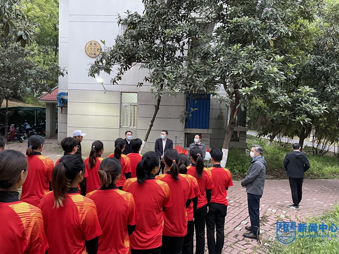校領(lǐng)導(dǎo)看望結(jié)束冬訓(xùn)返校的南工大江蘇女壘隊員