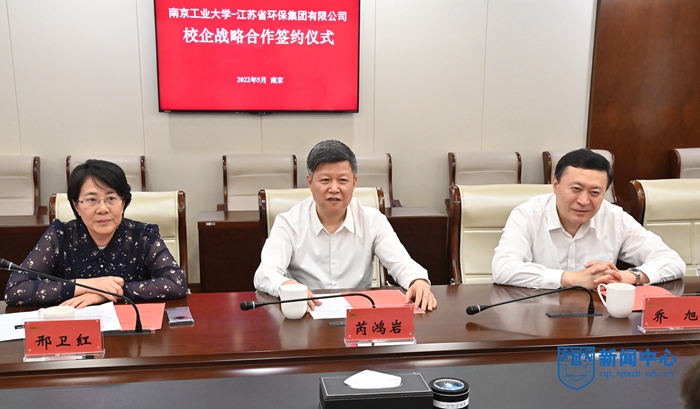 5月20日下午,我校與江蘇省環保集團有限公司戰略合作簽約儀式在國家重點實驗室三樓會議室隆重舉行,省環保集團黨委書記、董事長方斌斌,總經理許峰、總經理助理姜勇,校黨委書記芮鴻巖、校長喬旭、副校長邢衛紅出席簽約儀式。