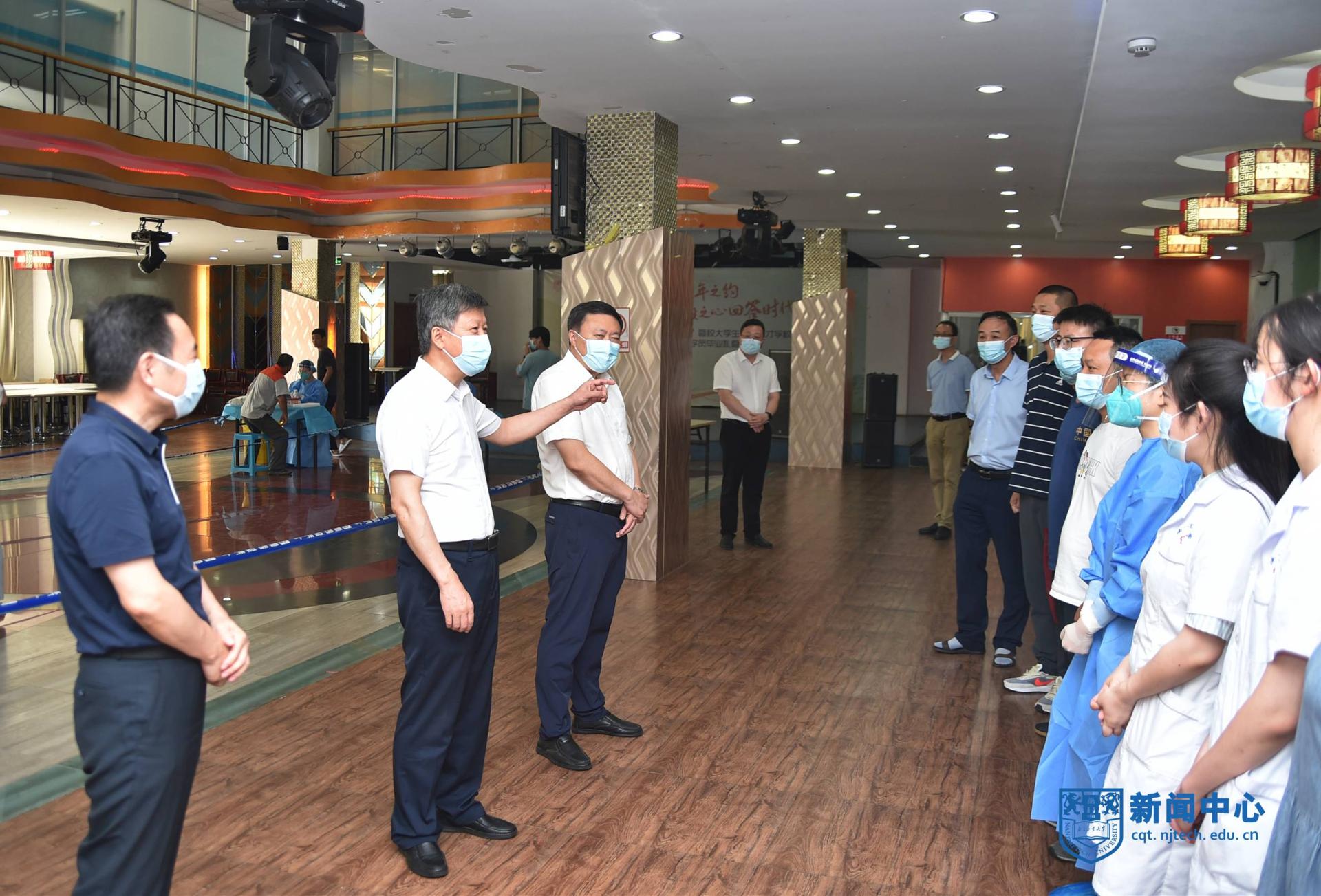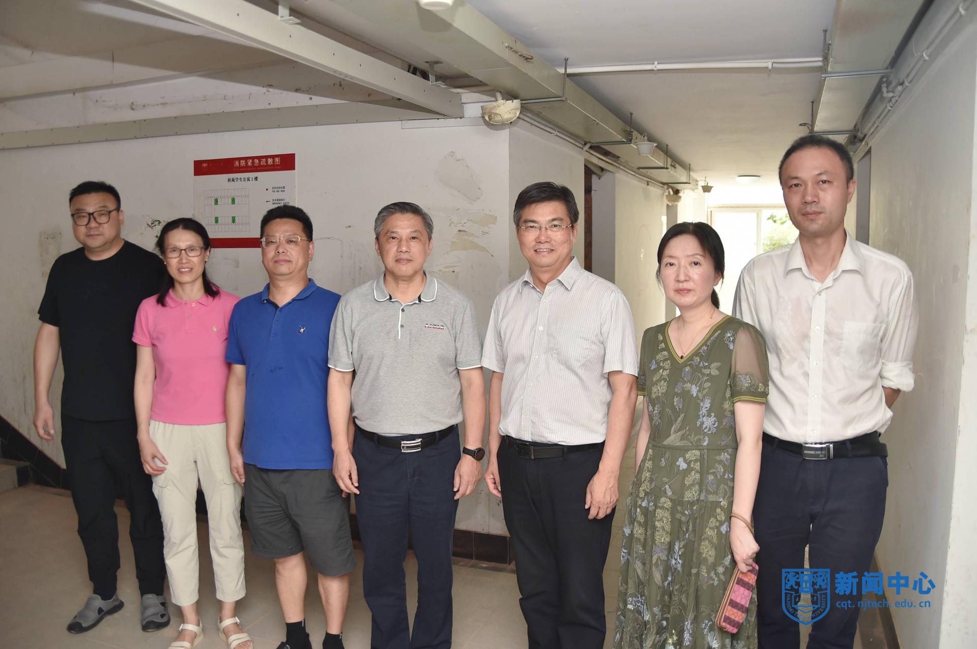 校領(lǐng)導(dǎo)一行先后走訪江浦校區(qū)東南門崗、化學(xué)學(xué)科樓施工現(xiàn)場、材料化學(xué)工程國家重點實驗室、大學(xué)生活動中心、東苑食堂等地,與留校師生員工親切交流,詳細(xì)了解、認(rèn)真詢問暑假期間宿舍物管、餐飲服務(wù)、疫情防控、基本建設(shè)、實驗安全、校舍出新、校園安保等與師生日常生活密切相關(guān)的綜合保障工作,并要求相關(guān)部門和單位要切實關(guān)心高溫中堅守拼搏在各條戰(zhàn)線的師生員工,做好防暑降溫工作,想師生之所想、急師生之所急,盡力為堅守一線的師生創(chuàng)造一個良好的工作生活環(huán)境,確保學(xué)校有序運行和安全穩(wěn)定。