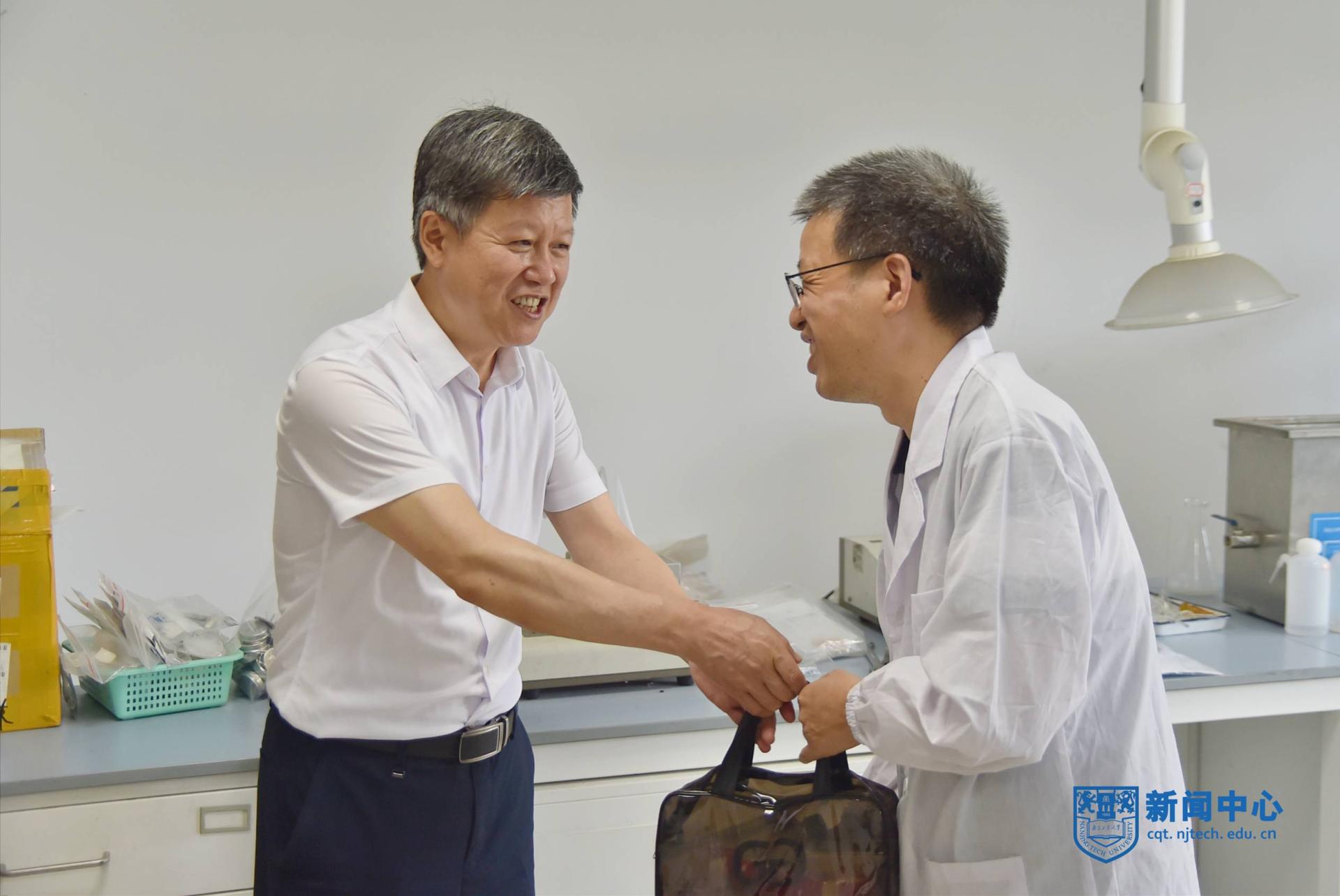 在材料化學(xué)工程國家重點實驗室看望奮戰(zhàn)在一線的科研工作者時,喬旭校長詳細(xì)詢問了教師們的科研進(jìn)展,對廣大教師和科研工作者的辛勤努力表示感謝。他指出,暑期是休息調(diào)整的時間,更是潛心科研、多出成果的黃金時間,希望老師們注意防暑降溫、勞逸結(jié)合,用好假期時間,把上半年疫情影響補(bǔ)回來,力爭取得更好的教學(xué)科研業(yè)績。