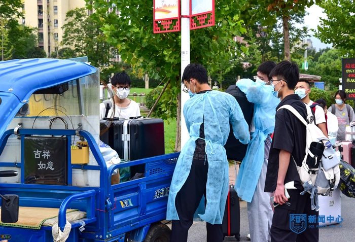 一站到底,協(xié)力構(gòu)建“一站式”入學(xué)流程。學(xué)校進(jìn)一步優(yōu)化“智慧迎新系統(tǒng)”,以簡明的報到申請、快捷的報到審核、流暢的入校核驗,助力新生完成報到流程;在南京市內(nèi)主要交通樞紐及校內(nèi)設(shè)立接駁車,直接將新生接至宿舍報到;制作新生報到流程動畫視頻,讓新生提前了解入校注意事項;建設(shè)大數(shù)據(jù)平臺,實時精準(zhǔn)掌握所有新生報到情況。