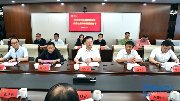 9月22日上午,教育部專家組組長黎玖高一行8人蒞臨我校開展全國教育系統安全檢查工作。省高等學校后勤協會副會長兼秘書長黃在宇、省教育廳安全保衛與維護穩定處處長冷法爾、科學技術與產業處處長韓葉祥等領導陪同檢查。檢查匯報會在弘毅樓三樓會議室舉行,校長蔣軍成,黨委常委、副校長劉大衛出席會議。