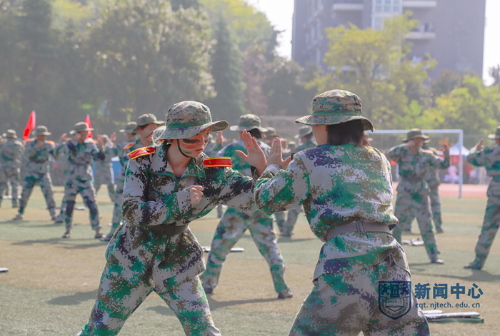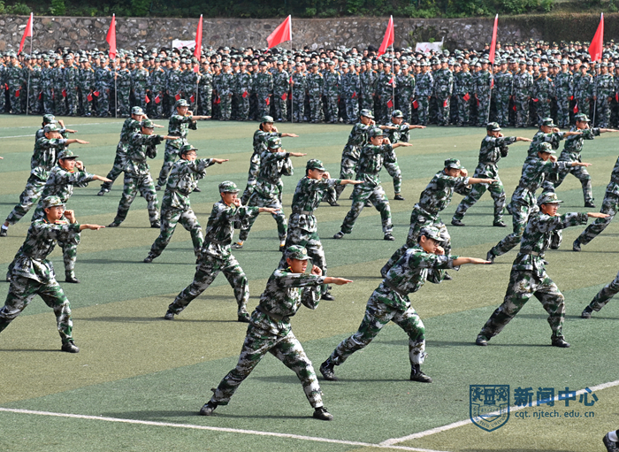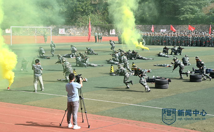 上午九時(shí),在升國(guó)旗儀式后,軍訓(xùn)匯報(bào)表演正式開(kāi)始。在首先進(jìn)行的分列式表演中,2022級(jí)本科新生組成十個(gè)方陣,精神飽滿(mǎn)、隊(duì)列整齊地通過(guò)主席臺(tái),充分展示了青春激揚(yáng)的風(fēng)采。隨后,1800余名新生分五組分別進(jìn)行了匕首操、格斗術(shù)、軍體拳、突擊戰(zhàn)術(shù)和花樣方陣表演。他們還通過(guò)隊(duì)形的變化和多種道具呈現(xiàn)了“喜迎二十大”“請(qǐng)黨放心 強(qiáng)國(guó)有我”“百廿南工大”“明德 厚學(xué) 沉毅 篤行”等字樣或圖案,表達(dá)了迎接黨的二十大勝利召開(kāi)的喜悅之情和對(duì)祖國(guó)的摯愛(ài)、對(duì)學(xué)校的熱愛(ài)。匯報(bào)表演結(jié)束后,芮鴻巖書(shū)記宣讀了《關(guān)于表彰南京工業(yè)大學(xué)2022級(jí)本科新生軍訓(xùn)先進(jìn)集體和先進(jìn)個(gè)人的決定》,主席臺(tái)前排領(lǐng)導(dǎo)和嘉賓為獲獎(jiǎng)代表頒獎(jiǎng)。學(xué)生代表向承訓(xùn)教官代表獻(xiàn)花致謝,蔣軍成校長(zhǎng)向承訓(xùn)部隊(duì)贈(zèng)送錦旗,全體新生以如潮般的掌聲歡送教官。