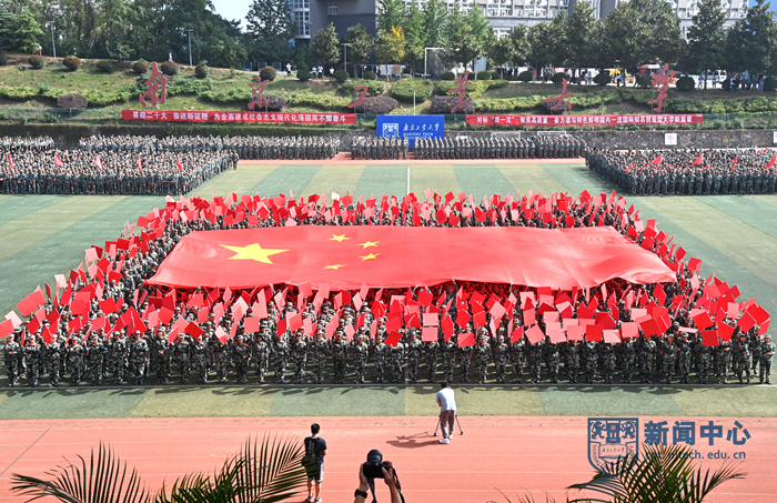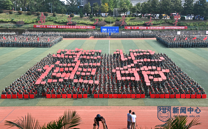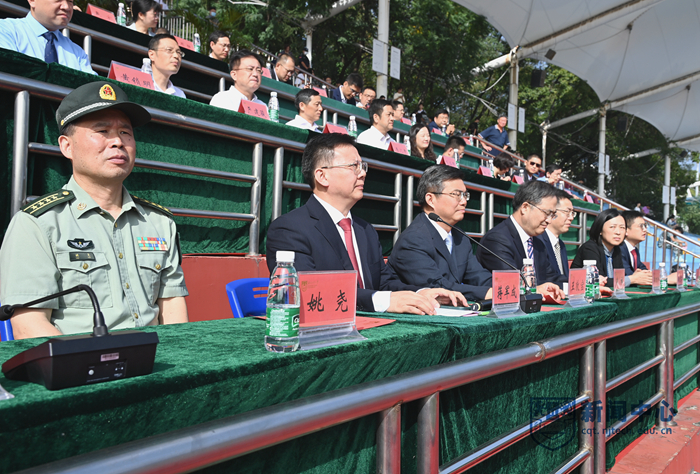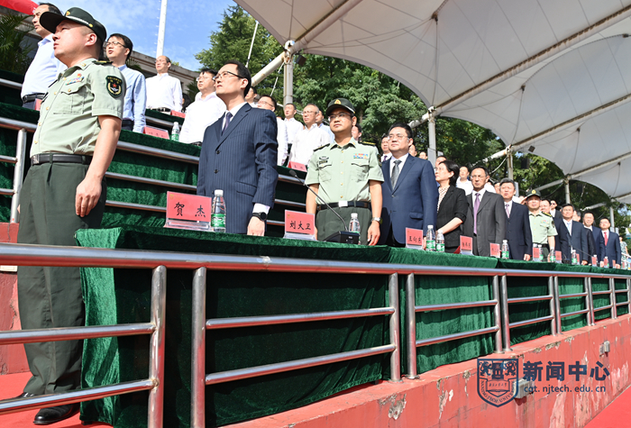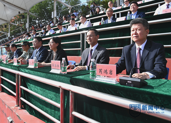 9月29日上午,我校2022級(jí)新生軍訓(xùn)匯報(bào)暨開(kāi)學(xué)典禮在江浦校區(qū)行健田徑場(chǎng)舉行。陸軍工程大學(xué)副校長(zhǎng)姚堯大校、指揮控制工程學(xué)院院長(zhǎng)王向東大校,我校領(lǐng)導(dǎo)芮鴻巖、蔣軍成、吳勝紅、王敦寶、邢衛(wèi)紅、凌祥、陸偉東、郭萬(wàn)牛、戴志暉、郭凱,各學(xué)院書(shū)記、院長(zhǎng)、相關(guān)職能部門(mén)負(fù)責(zé)人等在主席臺(tái)就座。黨委常委、副校長(zhǎng)劉大衛(wèi)主持軍訓(xùn)匯報(bào)暨開(kāi)學(xué)典禮。