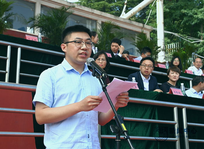 芮鴻巖書(shū)記宣讀《關(guān)于表彰南京工業(yè)大學(xué)2022級(jí)本科新生軍訓(xùn)先進(jìn)集體和先進(jìn)個(gè)人的決定》