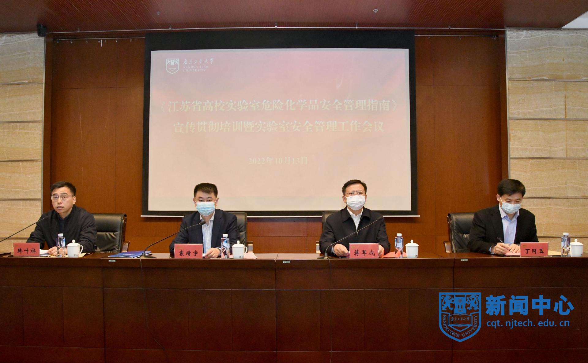 為深入貫徹習(xí)近平總書記關(guān)于安全工作的系列重要指示,全面落實省委、省政府和教育部關(guān)于加強(qiáng)高校實驗室安全工作的決策部署,進(jìn)一步提高我省高校實驗室危險化學(xué)品安全管理水平,10月13日下午,省教育廳在我校召開《江蘇省高校實驗室危險化學(xué)品管理指南》宣傳貫徹培訓(xùn)暨實驗室安全管理工作會議。省教育廳副廳長袁靖宇出席會議并講話。我校校長蔣軍成,黨委常委、副校長戴志暉出席會議。會議由省教育廳科學(xué)技術(shù)與產(chǎn)業(yè)處處長韓葉祥主持。