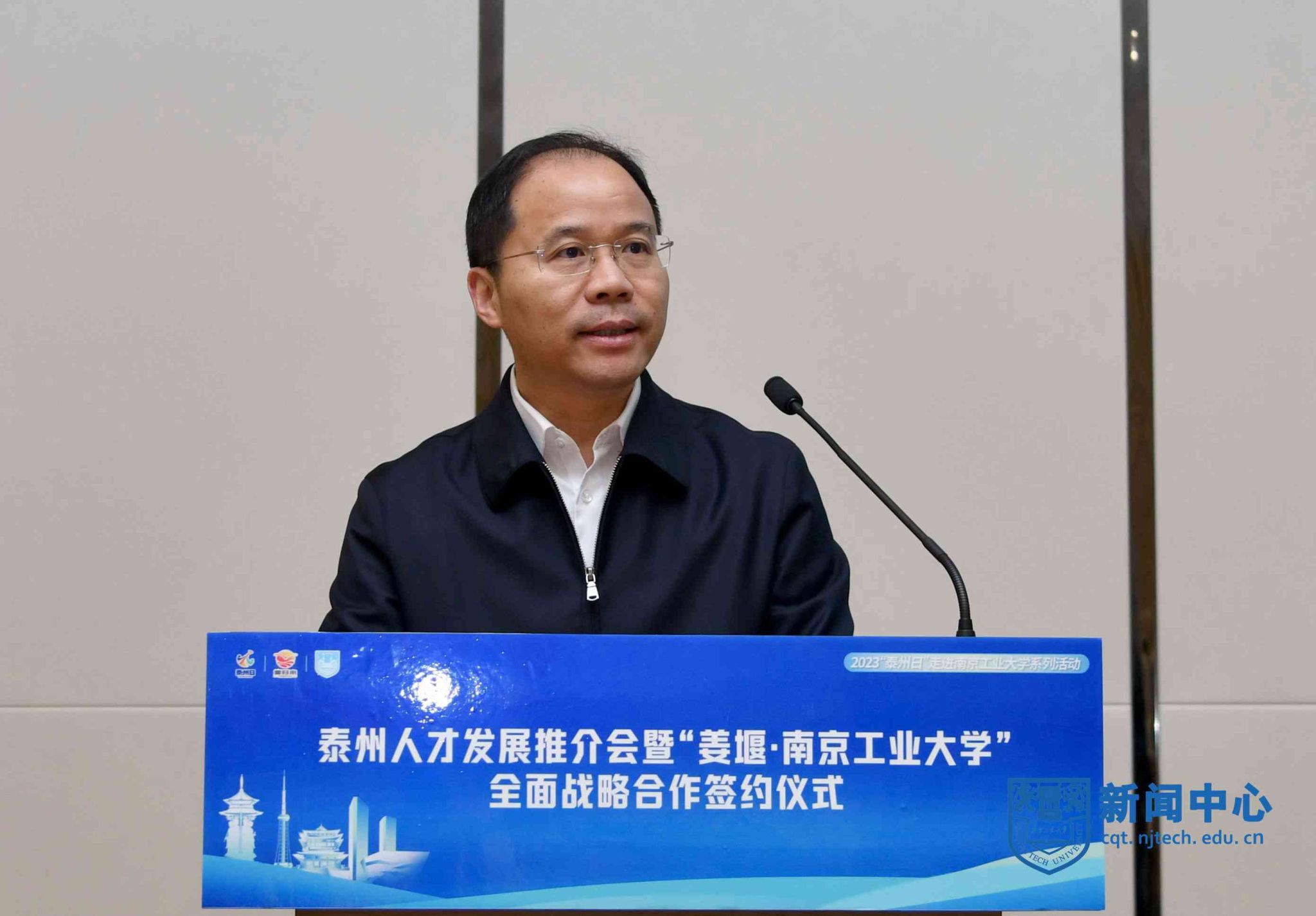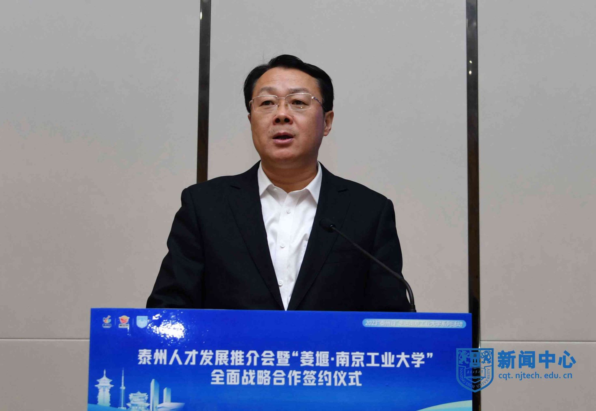 梁三元部長介紹了泰州的經濟發展情況、人才政策、人文生態及“泰州日”活動等內容。他表示,南京工業大學是泰州“致力民生、聚力轉型”迫切需要的人才輸送地、創新策源地,希望能進一步深化校地合作,讓更多優秀青年人才選擇泰州、愛上泰州、扎根泰州。