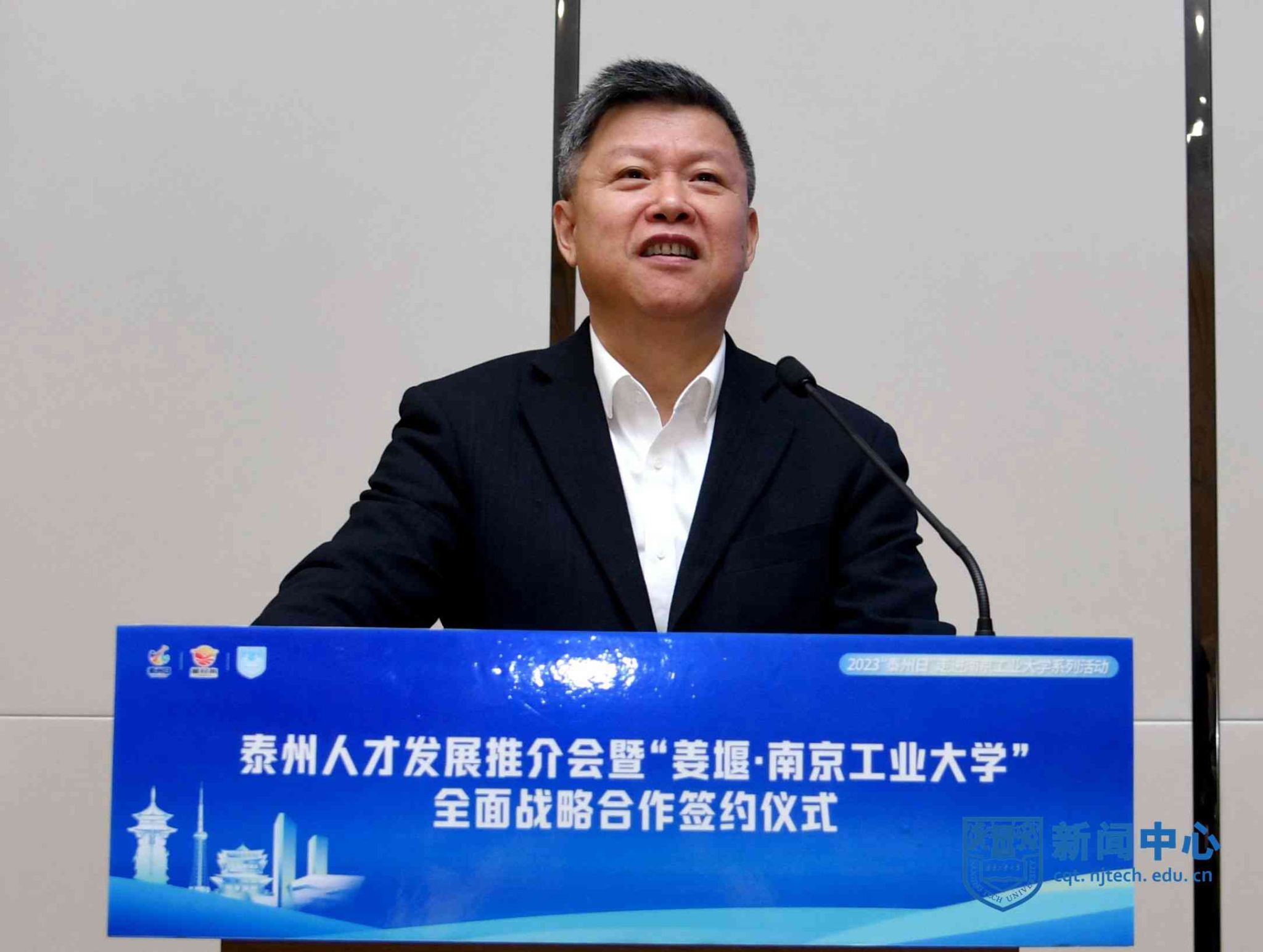 在泰州人才發展推介會暨“姜堰·南京工業大學”全面戰略合作簽約儀式上,芮鴻巖書記簡要介紹了學?;厩闆r以及在產學研協同創新、科技成果轉化等方面的特色做法。他表示,南京工業大學與泰州市合作共建引才工作站、與泰州姜堰區簽署戰略合作協議,這是雙方事業高質量發展的共同追求,也是推進中國式現代化江蘇新實踐的共同責任。學校將舉全校之力,匯全校之智,集全校之才,與泰州市和泰州姜堰區開展深度合作,共搭“育人橋”、共添“動力源”、共畫“同心圓”,推動人才鏈、教育鏈、產業鏈和創新鏈有機銜接、融合發展,努力實現校地雙贏、多贏、共贏。