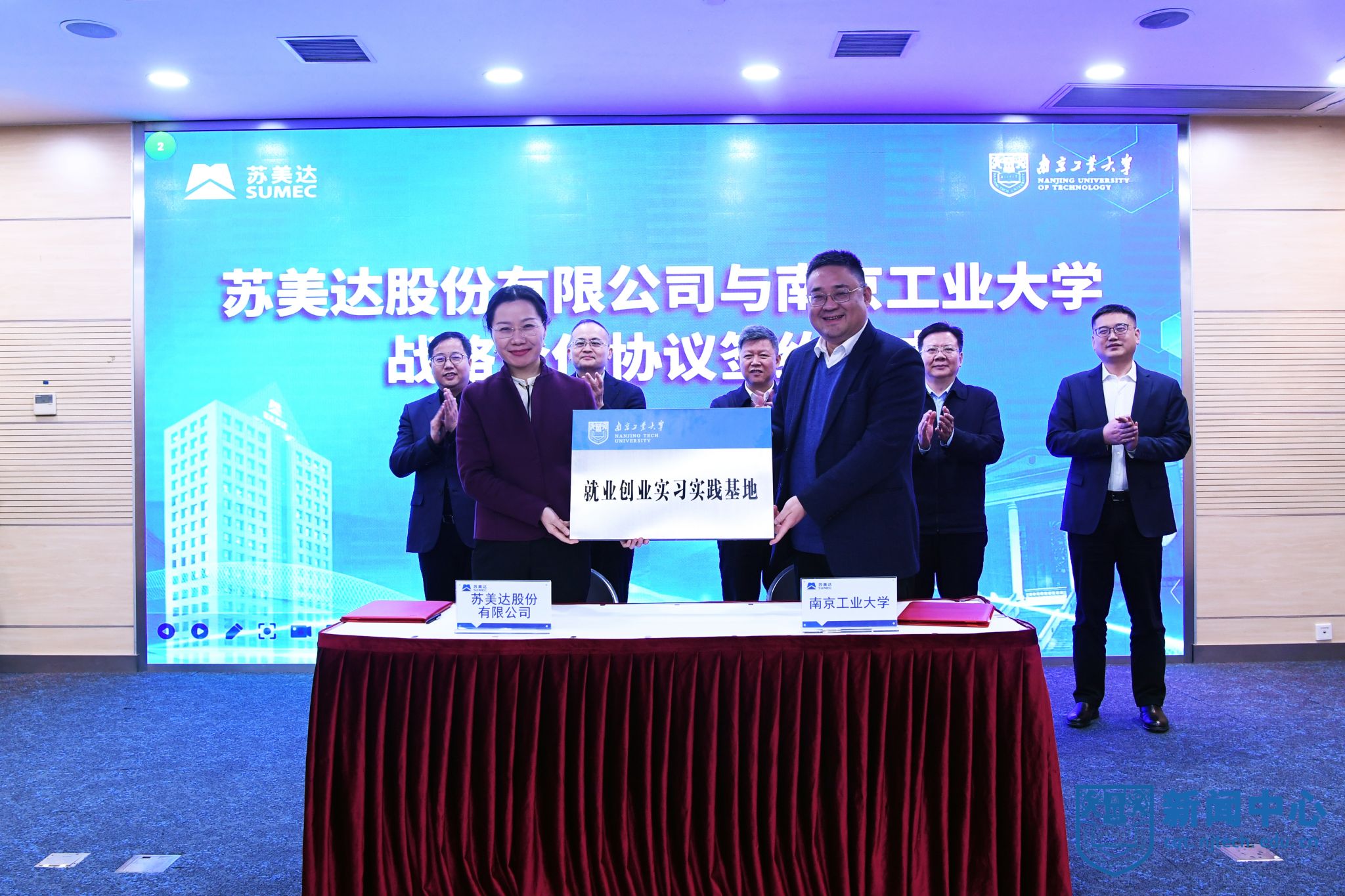 2月21日下午,我校與蘇美達股份有限公司戰(zhàn)略合作簽約儀式在蘇美達大廈四樓會議室舉行。蘇美達股份有限公司黨委書記、董事長楊永清,黨委委員、副總經(jīng)理范雯燁,黨委委員、副總經(jīng)理史磊,校黨委書記芮鴻巖,校長蔣軍成,黨委常委、副校長陸偉東,黨委常委、副校長郭凱出席活動。