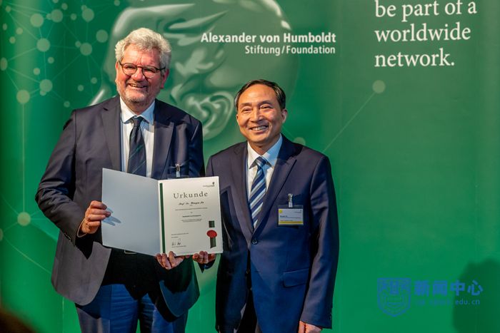 3月24日,金萬勤教授參加了在德國班貝格(Bamberg)舉行的德國亞歷山大·馮·洪堡基金會(huì)“洪堡研究獎(jiǎng)(Humboldt Research Award)”頒獎(jiǎng)典禮,亞歷山大·馮·洪堡基金會(huì)現(xiàn)任主席Robert Schloegl教授給他頒發(fā)了2021年度洪堡研究獎(jiǎng)證書, 以表彰其“在國際膜科學(xué)與技術(shù)領(lǐng)域取得的杰出成就;他為新型分離膜的研究做出了重要貢獻(xiàn);他的研究將材料科學(xué)和工程方法與化學(xué)工程前沿相結(jié)合(Professor Jin is well known internationally for his outstanding research in membrane science and technology. He has made important contributions to the fabrication of novel synthetic membranes. His work combines methods of materials science and engineering with cutting-edge chemical engineering.)”金萬勤教授是中國化學(xué)工程領(lǐng)域獲得這一榮譽(yù)的第一人。