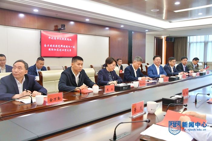 蔣軍成校長匯報了學校的基本情況、辦學特色、發展愿景和近年來的改革發展情況。芮鴻巖書記表示,學校堅持立德樹人根本任務,以高質量黨建引領高質量發展,充分發揮教育科技人才三位一體優勢作用,積極服務中國式現代化江蘇新實踐,在關鍵核心技術研發、服務科技自立自強上做出了有益探索。邢衛紅、郭凱、周治、霍峰蔚、金萬勤、王冀寧等圍繞服務科技自立自強進行交流發言。