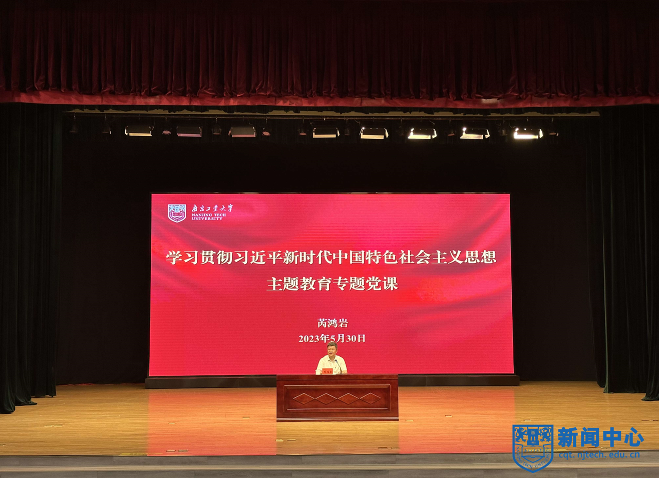 5月30日下午,學校主題教育領導小組組長、黨委書記芮鴻巖以“牢記殷殷囑托落實根本任務加快建設高質量高等教育體系”為題在江浦校區博雅堂為黨員、干部和師生代表講授專題黨課。省委主題教育第十八巡回指導組組長陳國祥蒞臨指導。
