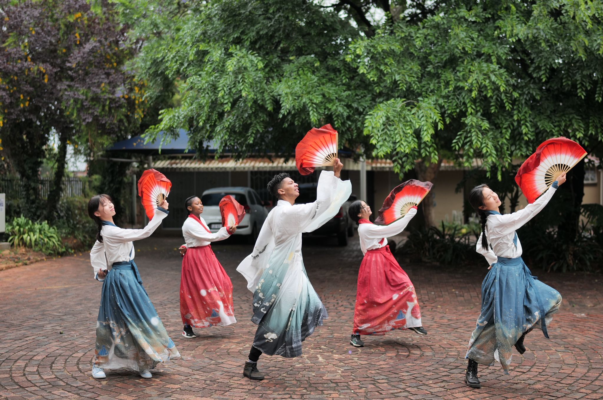 考察期間,約堡孔院中方院長(zhǎng)李寶生匯報(bào)了南京工業(yè)大學(xué)實(shí)施國際化戰(zhàn)略,助力“一帶一路”建設(shè),促進(jìn)中南文化交流,推進(jìn)科技孔院建設(shè)的情況,孔院師生帶來了精彩的中國扇子舞《驍》、合唱《萬疆》、《茉莉花》等,以及太極、棍術(shù)、醉拳等中國功夫表演。