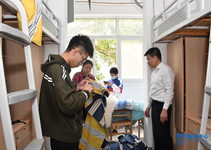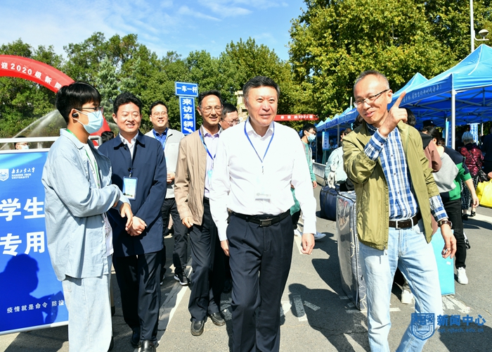 新生報(bào)到期間,校黨委書記芮鴻巖,校長(zhǎng)喬旭,黨委副書記吳勝紅,黨委常委、副校長(zhǎng)趙志宏來(lái)到報(bào)到現(xiàn)場(chǎng),詳細(xì)了解迎新工作開展情況,慰問(wèn)奮戰(zhàn)在迎新一線的工作人員和志愿者,熱烈歡迎2020級(jí)本科新生的到來(lái),并與部分新生和家長(zhǎng)親切交談、合影留念。