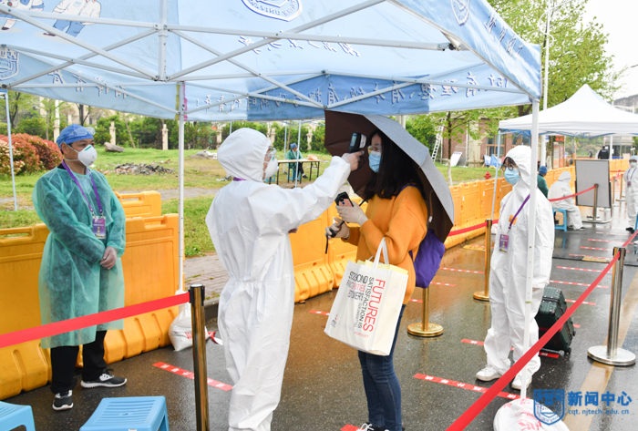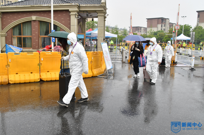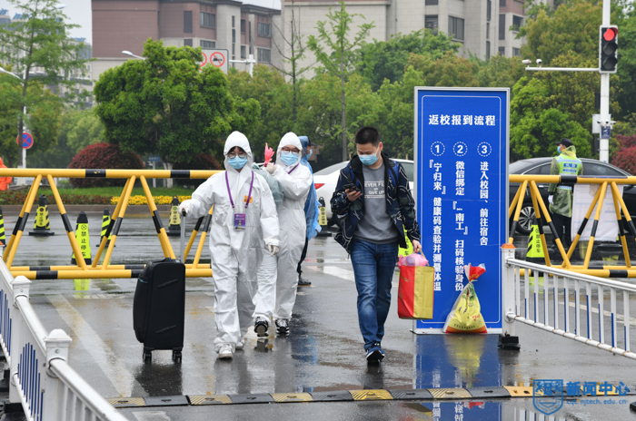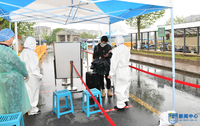 根據“錯峰、分批”原則,4月17—18日,我校全體博士研究生、畢業班碩士研究生和畢業班本科生陸續返校報到。校領導現場指導報到工作、慰問一線工作人員和返校同學,江北新區和鼓樓區公安、疾控中心等有關部門全程指導保障。