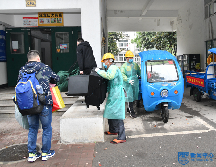 為確保學校首批學生返校工作平穩有序完成,學校高度重視,周密部署,嚴格按照省委、省政府和省教育廳要求,做細做實學生返校當天各項工作。報到當天,現場秩序井井有條。交警和校園安全部共同疏散車輛、指揮交通、維持治安,黨委學工部、黨委研工部、黨委保衛部、后勤保障處以及由校部機關各黨支部領導老師組成的志愿者隊伍全員出動、堅守崗位,為返校學生提供報到引導、行李搬運、體溫檢測、健康碼和報到碼查驗等服務。學校專門安排了抵達宿舍區的接駁車、行李運輸車,并為返校學生準備了體溫計、消毒片、消毒專用噴壺等防疫物資。