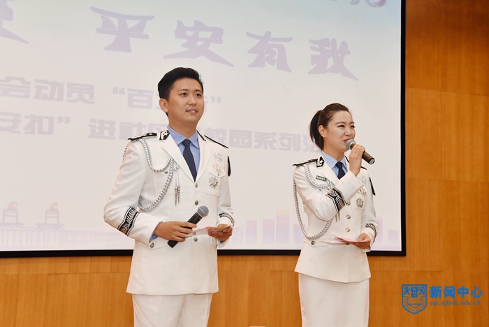 10月14日下午,“石城有愛 平安有我”南京公安社會動員百場行暨江北新區“平安扣”社會動員活動在我校篤學樓報告廳舉行,江北新區公安分局團委書記魯騰飛、頂山派出所所長謝琦,我校校園安全部部長童政權、副部長徐東與400余名師生共同觀看了演出。
