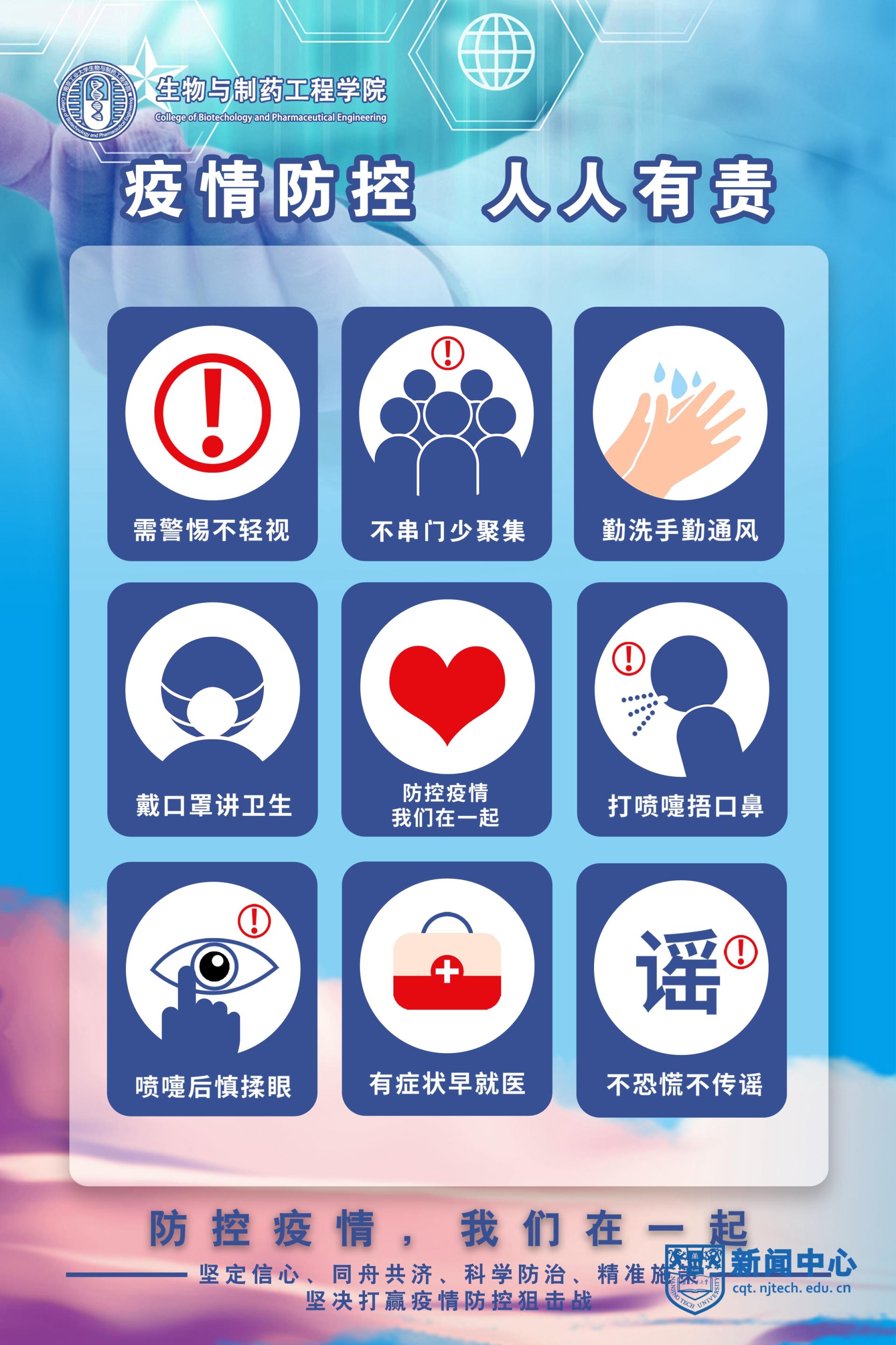 為切實做好疫情防控工作,在符合消防管理的前提下,學院臨時封閉了A1、B1、C1學科樓非主要出入口,對進入大樓的師生全面實行登記,并在樓內醒目位置張貼了疫情防控宣傳海報。