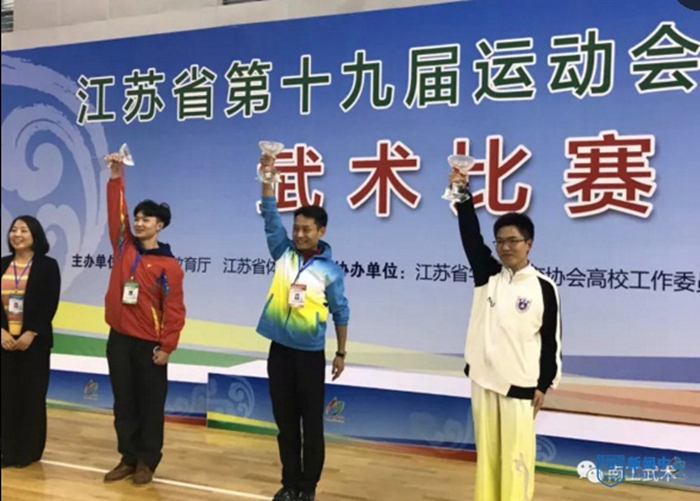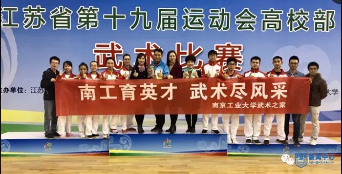 我校大學生武術隊在江蘇省第十九屆運動會高校部武術比賽中獲團體總分第一名