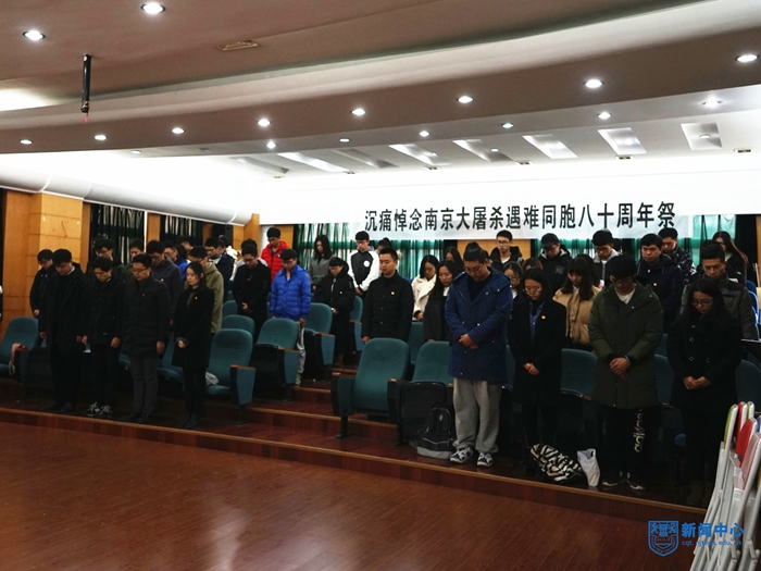 校領導和學生代表為南京大屠殺遇難同胞默哀