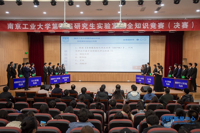 黨委研究生工作部、研究生院、實驗室建設與管理處及校園安全部主辦,校研究生會承辦的南京工業大學第四屆研究生實驗室安全知識競賽(決賽)于11月29日晚在篤學樓報告廳舉行。相關職能部門負責人、學院分管學生工作黨委(黨總支)書記、副書記,研究生輔導員及研究生代表參加活動。黨委研究生工作部部長、研究生院常務副院長張廣明,實驗室建設與管理處處長陳曉猛,校園安全部副部長徐東,安全科學與工程學院副院長潘勇擔任評審專家。