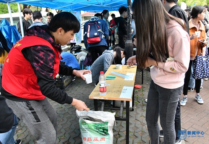 4月13日上午,由共青團中央學校部、微博校園、中國綠化基金會主辦,南京工業大學綠色環保協會承辦的“2018校園公益行暨第八屆全國大學生綠植領養”活動在江浦校區舉行。在東苑食堂、象山宿舍區和浦江宿舍區前廣場上,數千名師生排起長隊,到指定攤位領取心儀的綠色植物。浦口區環保局相關領導也來到活動現場,給廣大師生分發環保宣傳冊,普及環保知識。