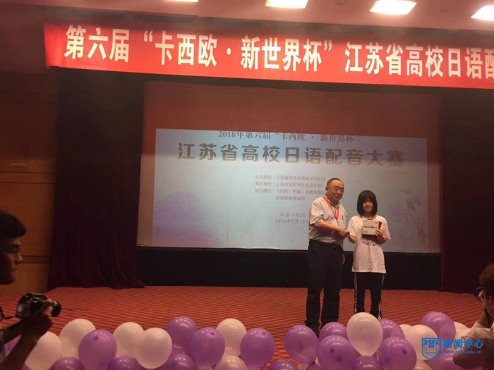 5月19日,第六屆“卡西歐?新世界杯”江蘇省高校日語配音大賽在江蘇師范大學舉辦。由4名日語系同學組成的我校代表隊在方萍老師的指導下,憑借地道嫻熟的發音、充沛的人物情感表現力,折服了現場評委,在三十四支參賽隊伍中脫穎而出,獲得比賽最高獎項特等獎,取得我校在該項賽事中的歷史最好成績。