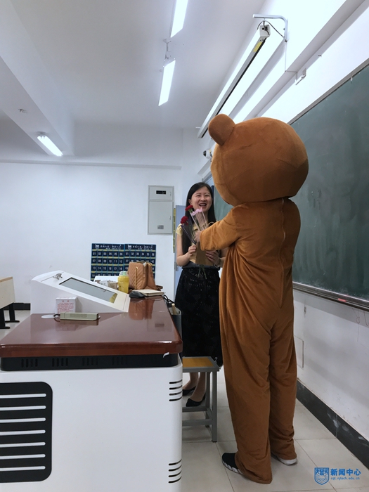 各教學(xué)樓張貼了許多慶祝教師節(jié)的海報(bào),字里行間飽含了同學(xué)們對老師的感恩之情。除了鮮花和潤喉糖,同學(xué)們還自發(fā)購買了賀卡,寫滿祝福語送給講臺上的各位老師,表達(dá)最真摯的祝福。