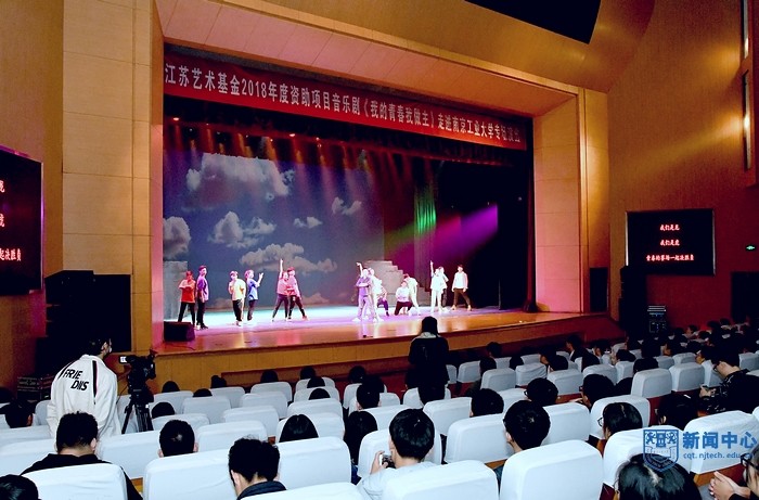11月12日晚,2018年高雅藝術進校園——江蘇藝術基金資助項目原創音樂劇《我的青春我做主》專場演出在江浦校區大禮堂舉行。省文化廳藝術基金管理中心、江蘇省演藝集團、南京文廣新局、南京市話劇團、南京藝術學院等相關單位的領導嘉賓、我校相關職能部門負責人與近千名同學共同觀看了演出。