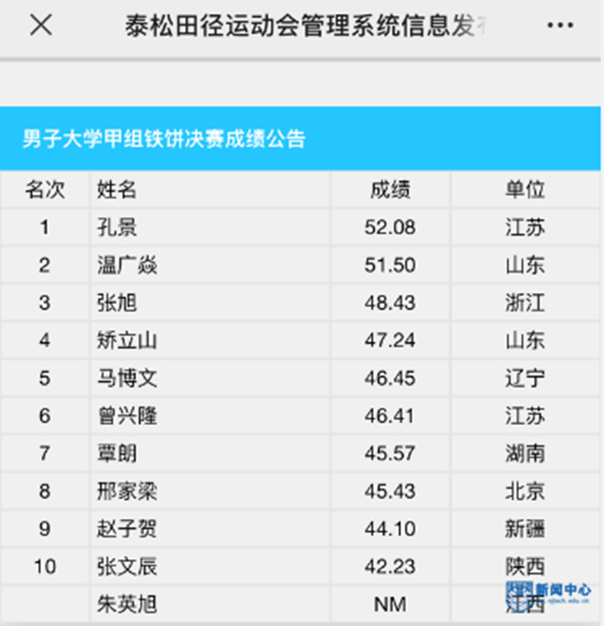 7月14日一17日,第十四屆全國學(xué)生運動會在青島舉行。在體育學(xué)院教練員於鵬和李海兵兩位老師的帶領(lǐng)下,經(jīng)濟管理學(xué)院孔景和王文文兩位同學(xué)代表江蘇省參加了大學(xué)組田徑項目的比賽,經(jīng)過奮力拼搏,孔景同學(xué)勇奪男子甲組鐵餅金牌,王文文同學(xué)榮獲女子甲組4x100米接力銅牌和女子甲組100米第六名,圓滿完成學(xué)運會任務(wù)。