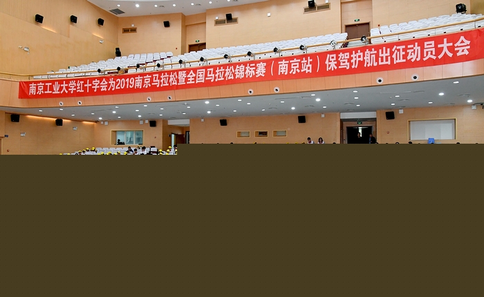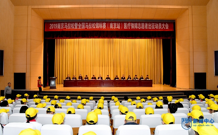 11月6日下午,2019年南京馬拉松醫療保障志愿者出征動員大會在我校江浦大禮堂順利召開。到會領導和嘉賓有校黨委常委、副校長、校紅十字會會長牛生杰,南京市體育局局長陳衛紅,江蘇省紅十字會衛生救護部部長聶城,南京市紅十字會副會長張杰,江蘇問源體育科技有限公司副總經理王瑋。黨委宣傳部、學生事務部、團委、后勤保障處等學校職能部門負責人出席會議,大會由后勤保障處處長、校紅十字會副會長朱興同主持,校紅十字會指導老師和全體醫療保障志愿者參與了此次動員大會。
