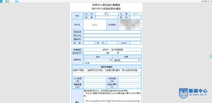 為方便師生使用,我校于2018年底開始研發(fā)“智慧南工”與校高性能計算平臺的深度融合創(chuàng)新,經(jīng)過一年時間終于成功融合,達到理想效果。