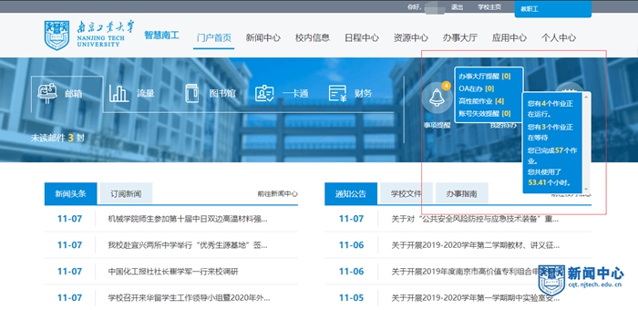 高性能計算平臺與智慧校園的融合,是我校在信息化服務領(lǐng)域的大膽嘗試。促進師生更高效、更方便地利用“智慧南工”平臺開展科研,也是支撐學校科研創(chuàng)新,高效發(fā)展的重要基礎(chǔ)之一。