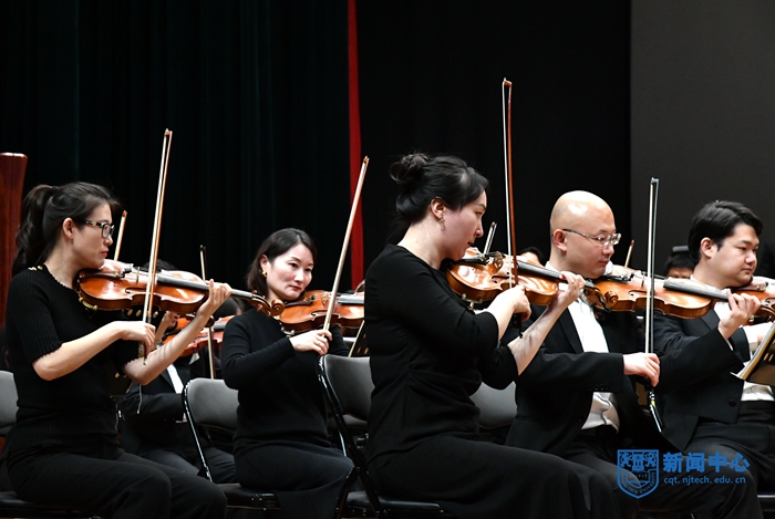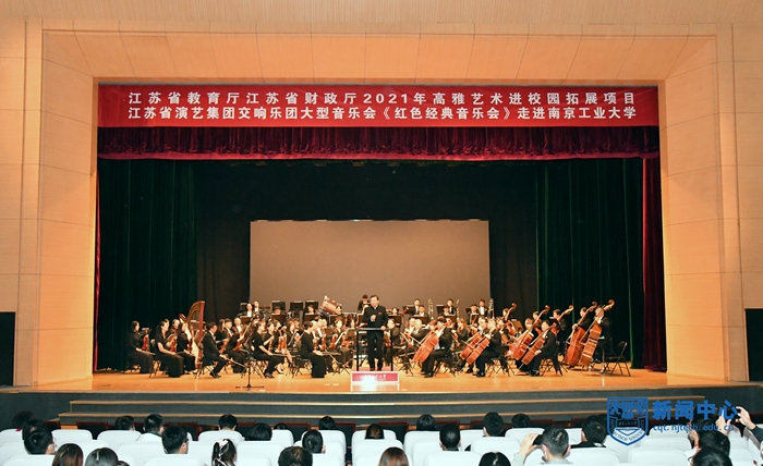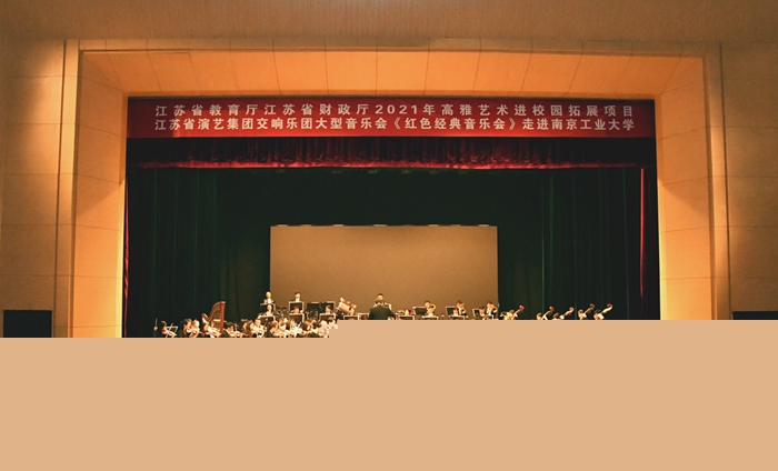10月26日晚,江蘇省教育廳江蘇省財政廳2021年高雅藝術進校園拓展項目江蘇省演藝集團交響樂團大型音樂會《紅色經典音樂會》在我校博雅堂舉行專場演出,校黨委常委、黨委宣傳部部長張健,江蘇省演藝集團交響樂團黨支部書記丁必武、副團長王志強親臨現場。