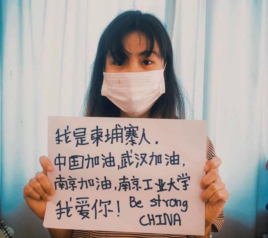武漢加油!中國加油!我與你們同在,柬埔寨人與你們同在,世界也與你們同在,一定要堅持住。我100%肯定中國一定會解決這次的問題,現在每一個醫生、護士都在不知疲倦地工作著。我每天都在祈禱著中國一定會好起來!
