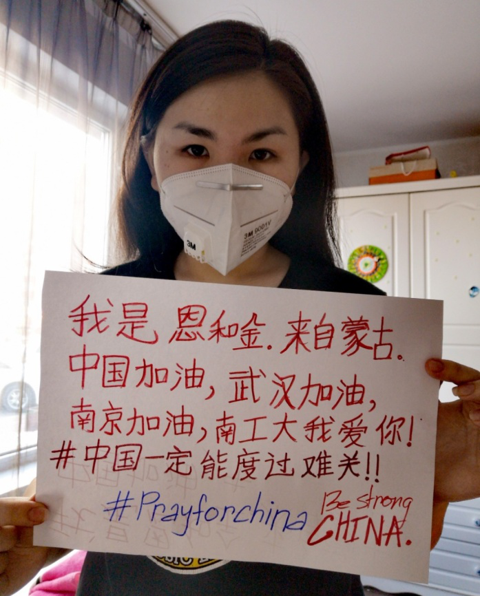 我現在在蒙古,但我每天都關注著中國的疫情,相信中國會很快渡過難關的!中國加油,武漢加油!南京加油!