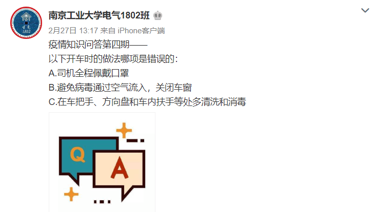 電氣1802班開展線上疫情知識問答,同學們積極參與。