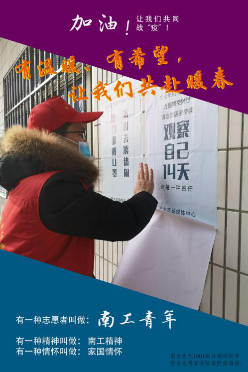 電氣1801班制作宣傳海報,他們說“有溫暖、有希望,讓我們共赴暖春!”