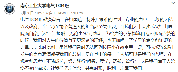 新冠肺炎疫情深深牽動著每一位中國人的心。電氣工程與控制科學學院學子雖然宅在家中,但時刻關注著疫情動態,通過網絡表達眾志成城抗疫情的信心和決心,為湖北為武漢加油,向奮戰在一線的“逆行者”致敬!
