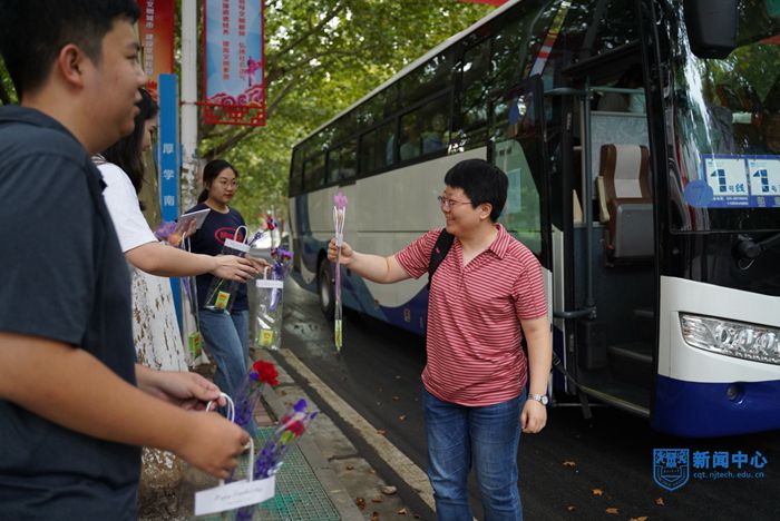 9月10日清晨7點半,“老師,您辛苦了”的橫幅出現在厚學、東苑等校車停靠點。望著第一班校車逐漸駛近,同學們走向下車點,為每位老師獻上鮮花和潤喉糖。同學們向老師們深情鞠躬,并誠摯地道一聲:“老師,您辛苦了!祝您節日快樂!”